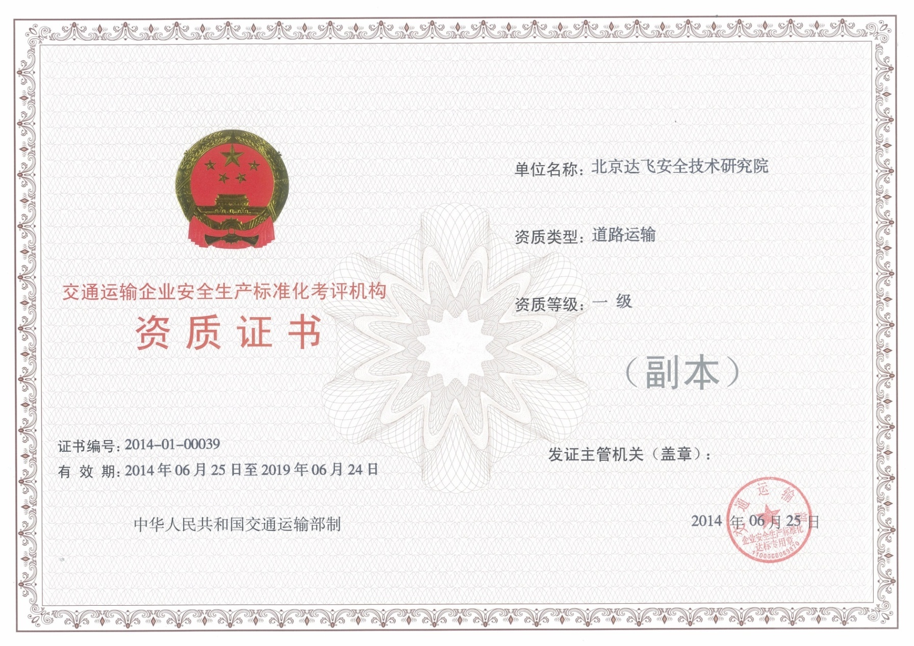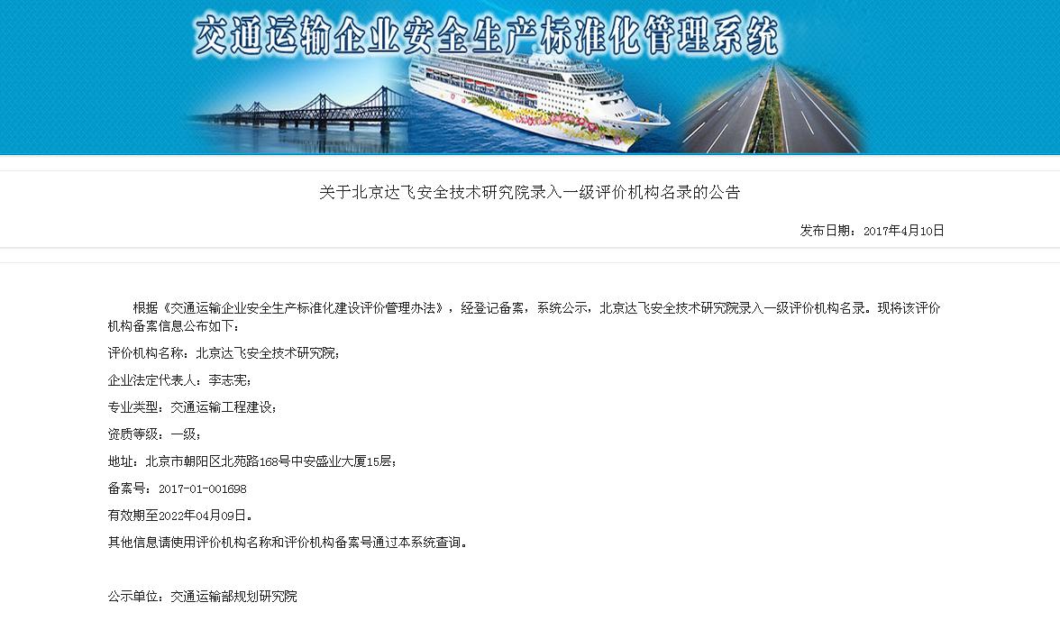交通運(yùn)輸企業(yè)安全生產(chǎn)標(biāo)準(zhǔn)化考評(píng)機(jī)構(gòu)(一級(jí))