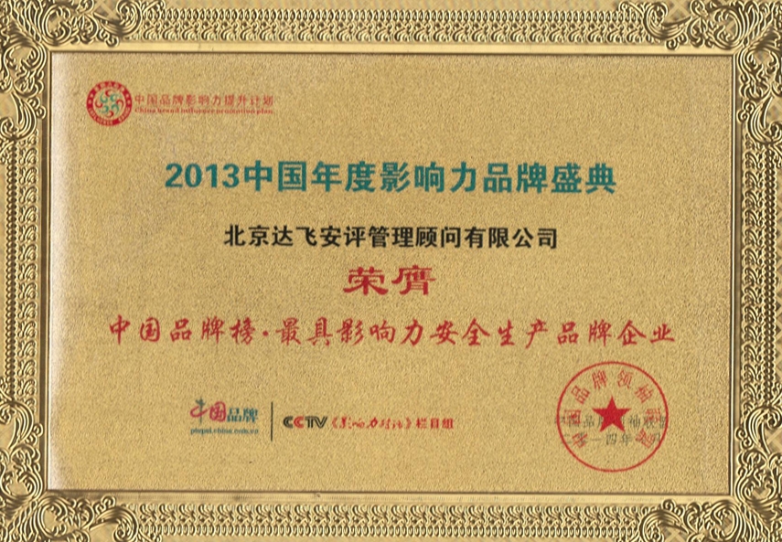 中國(guó)品牌榜·最具影響力安全生產(chǎn)品牌企業(yè)證書(shū)